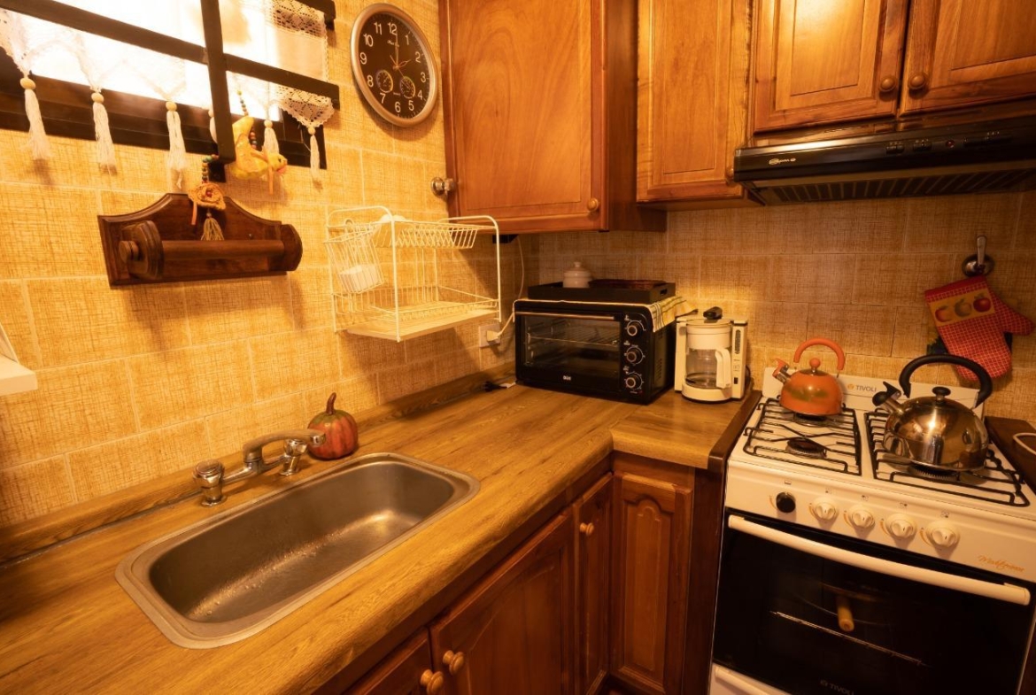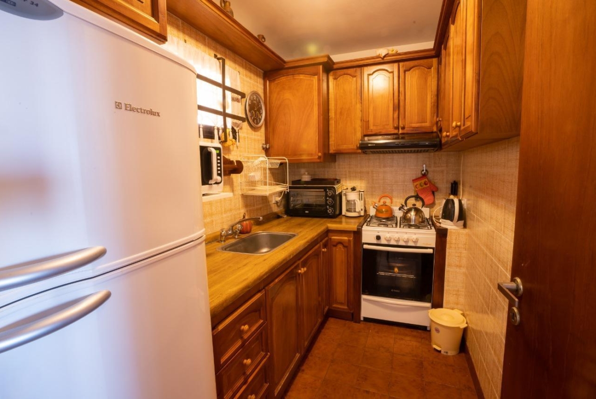 Cocina totalmente equipada con mesada, bacha, bajo mesada y alacenas.