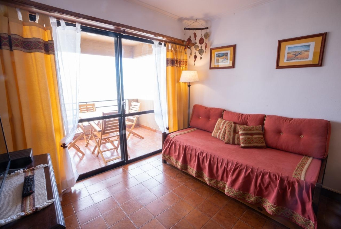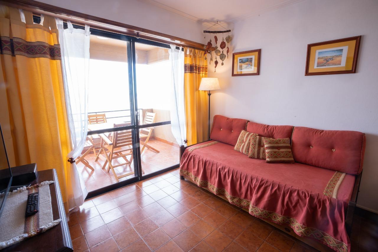 Amplio living comedor con un gran ventanal, salida a balcón terraza con vista al mar.